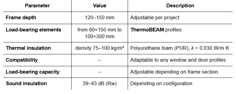 • Structural formation of window and door joints: The ThermoFRAME serves as the basis for forming window and door openings, including rectangular, corner, panoramic, and cantilever solutions, ensuring their load-bearing capacity and thermal insulation integrity.