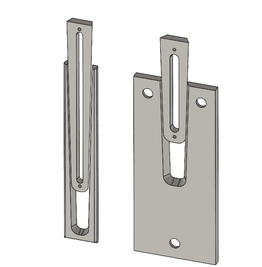 • Верхний элемент (вставной клин) — входит в паз снизу вверх под собственным весом или при лёгком усилии.
