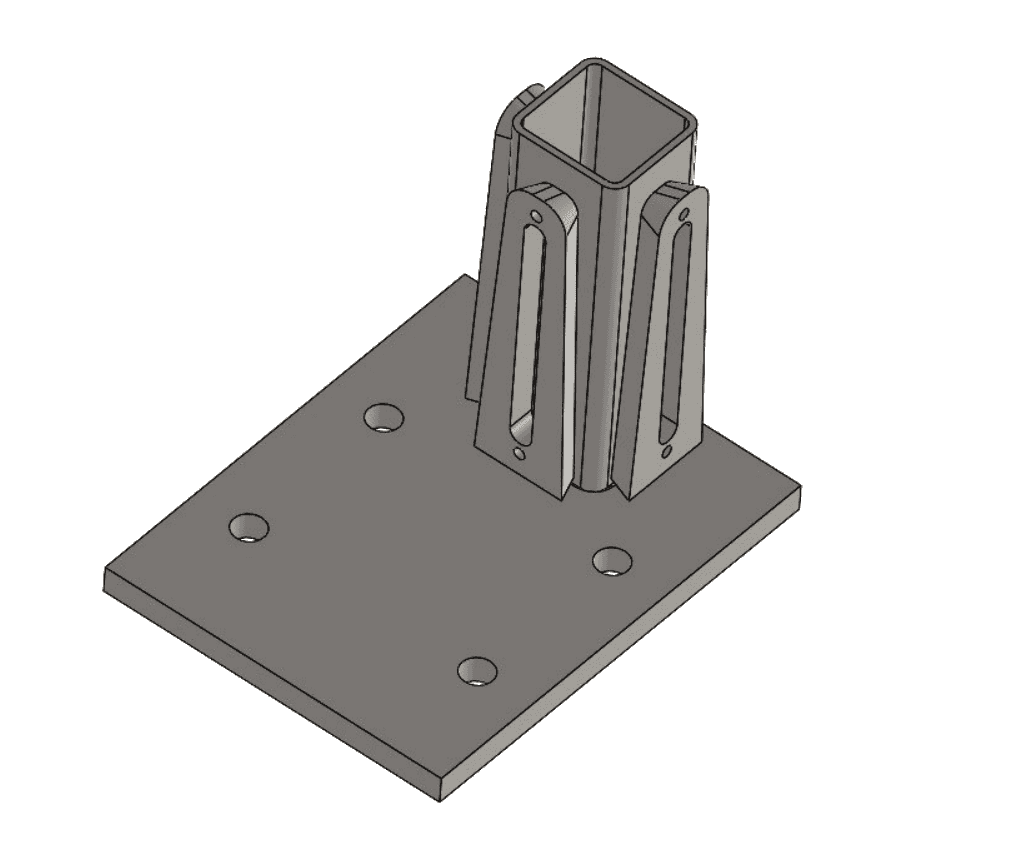 • Во внутреннюю трубу в верхней части приварена монтажная пластина (толщина 10 мм, ширина 75 мм, длина 150 мм) с двумя отверстиями ⌀12 мм, отступ 35 мм от краёв;