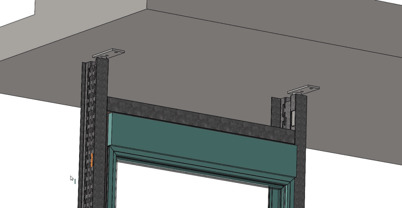• Затем пластина крепится к нижней стороне верхнего перекрытия (или к верхней направляющей) с помощью анкерных болтов.
