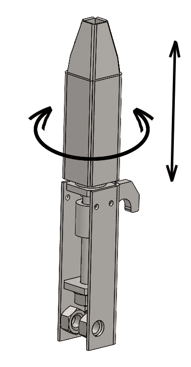 • Крюк соединён с подвижной вертикальной винтовой передачей, позволяющей точно отрегулировать положение панели по высоте;