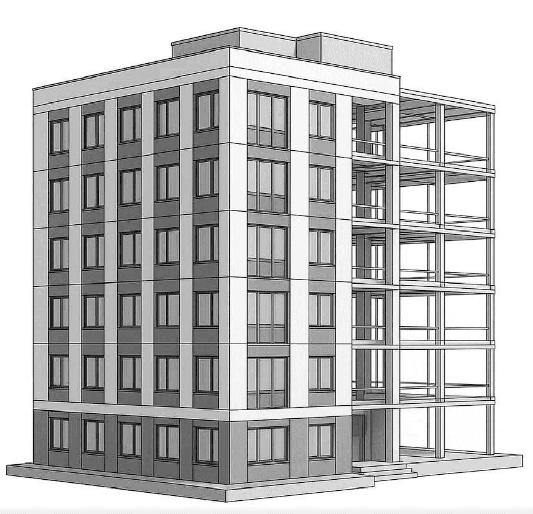 • Многоэтажные жилые и общественные здания до 7+ этажей.