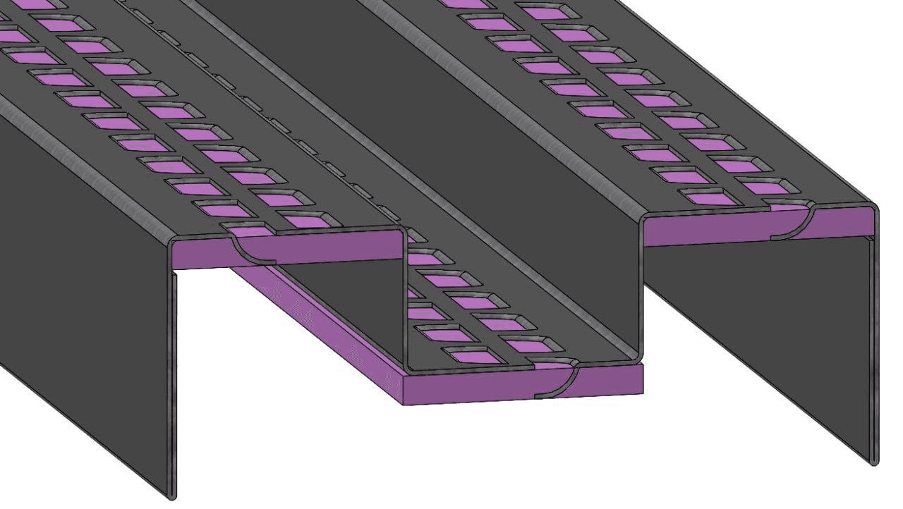 • Термопрофили: перфорированные металлические элементы с терморазрывами, усиливающими жёсткость и уменьшающими теплопроводность.