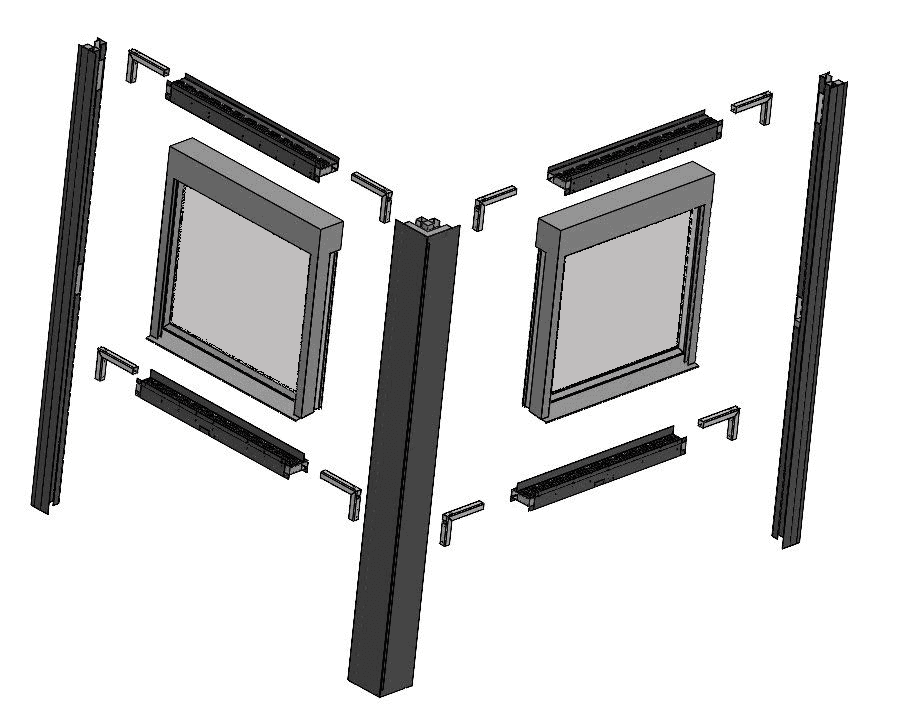 • Термобалки: стальной замкнутый профиль с термопросечками (“жалюзи”), внутренним армированием и заливкой жёстким ППУ. Обеспечивают несущую способность, тепло- и звукоизоляцию, в том числе и угловые, формирующие внешний и внутренний углы фасада здания.