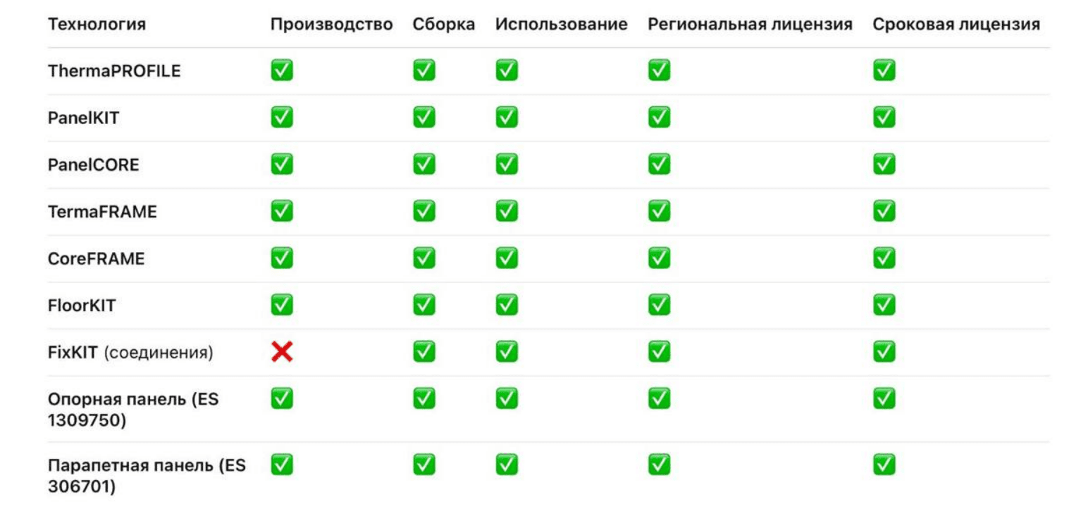 Каждый тип лицензии может быть привязан к отдельным технологиям системы KARKASYS — от модульных панелей PanelKIT до соединений FixKIT. Это позволяет гибко интегрировать решения в существующие производственные и строительные процессы.
