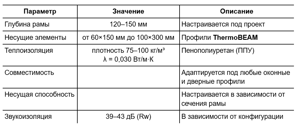 • Конструктивное формирование оконных и дверных узлов: Прерамы ThermoFRAME служат основой для формирования оконных и дверных проёмов, включая прямоугольные, угловые, панорамные и выносные решения, обеспечивая их несущую способность и теплоизоляционную целостность